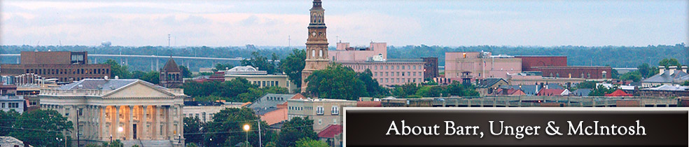Barr, Unger & McIntosh is a general practice law firm, providing a full range of legal services to individuals and business in coastal South Carolina for more than 35 years. With office locations in Charleston and Edisto Island, we serve the counties of Charleston, Colleton, Dorchester, Berkeley and Georgetown counties, which include the metropolitan areas of Charleston, North Charleston, Mt. Pleasant, Goose Creek, Hanahan, Moncks Corner, Walterboro, Edisto Beach, Georgetown and Pawley’s Island.